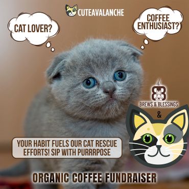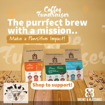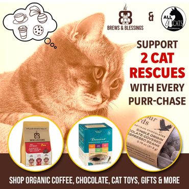 We're more than just a fundraising items fundraising platform; we're a cat rescue too. By partnering with us, your supporters will enjoy a unique selection of organic, fair-trade products, knowing that every purchase makes a double impact. Not only will they support your rescue, but they'll also be helping ours. Orders are placed directly on our website, brewsandblessings.com, where customers can choose your rescue to support at checkout.